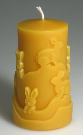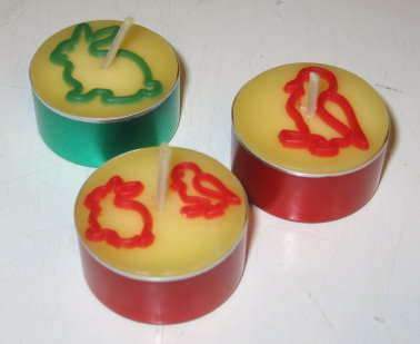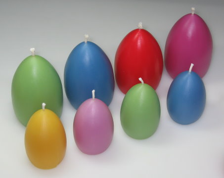 Eikerzen, gegossen aus gefärbtem Bienenwachs.