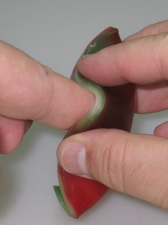 Die Wachsplatte wird mit den Fingern zur einer Schale geformt