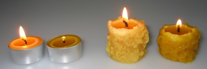 The impurities is fouling the wick more and more, while the wax was burning. You can see this effect extremely by smaler candles or tealights. Our tip: If you have bought wax or cleaned your own wax, test the purity with this test by making tealights. But the effect you can sometimes see after 10 minutes or 1 h, dependent of the amount of the impurities. After few minutes, you can not seen a different in all cases.